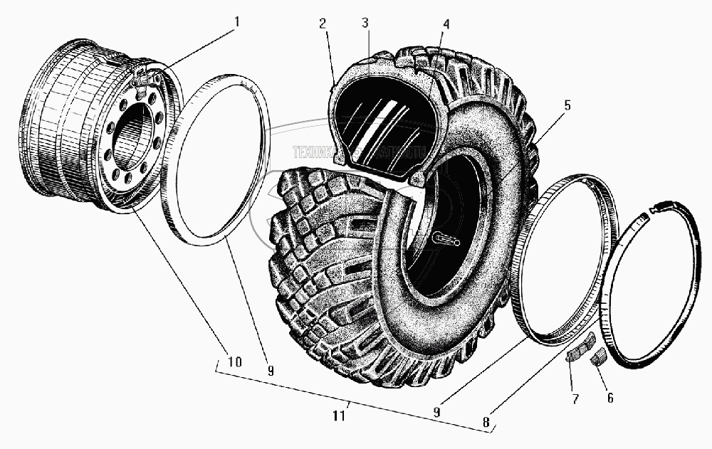 Каталог запасных частей к технике: УралАЗ УРАЛ-55571-1121-70. Колесо и шина
