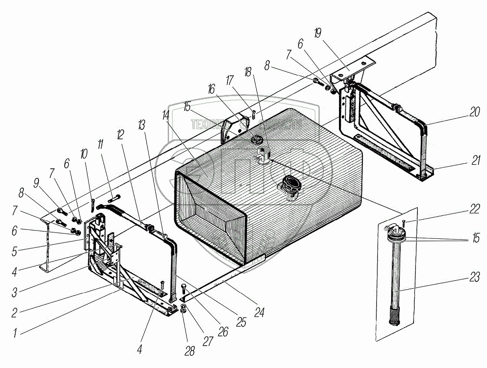 Каталог запасных частей к технике: УралАЗ УРАЛ-55571-1121-70. Основной топливный бак