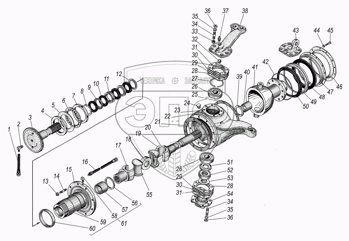 Каталог запасных частей к технике: УралАЗ УРАЛ-55571-1121-70. Передний мост