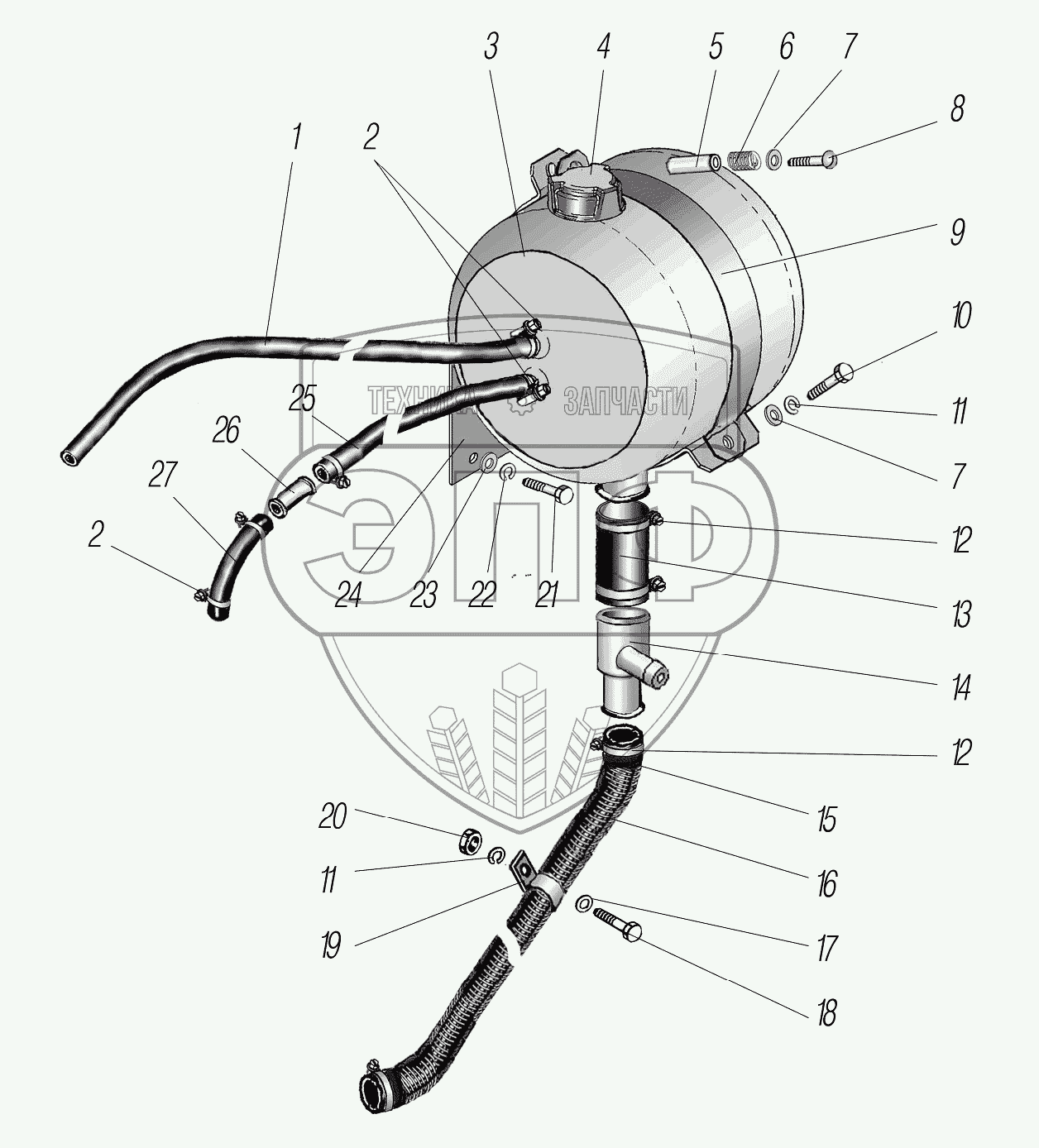 Каталог запасных частей к технике: УралАЗ УРАЛ-55571-1121-70. Установка расширительного бачка