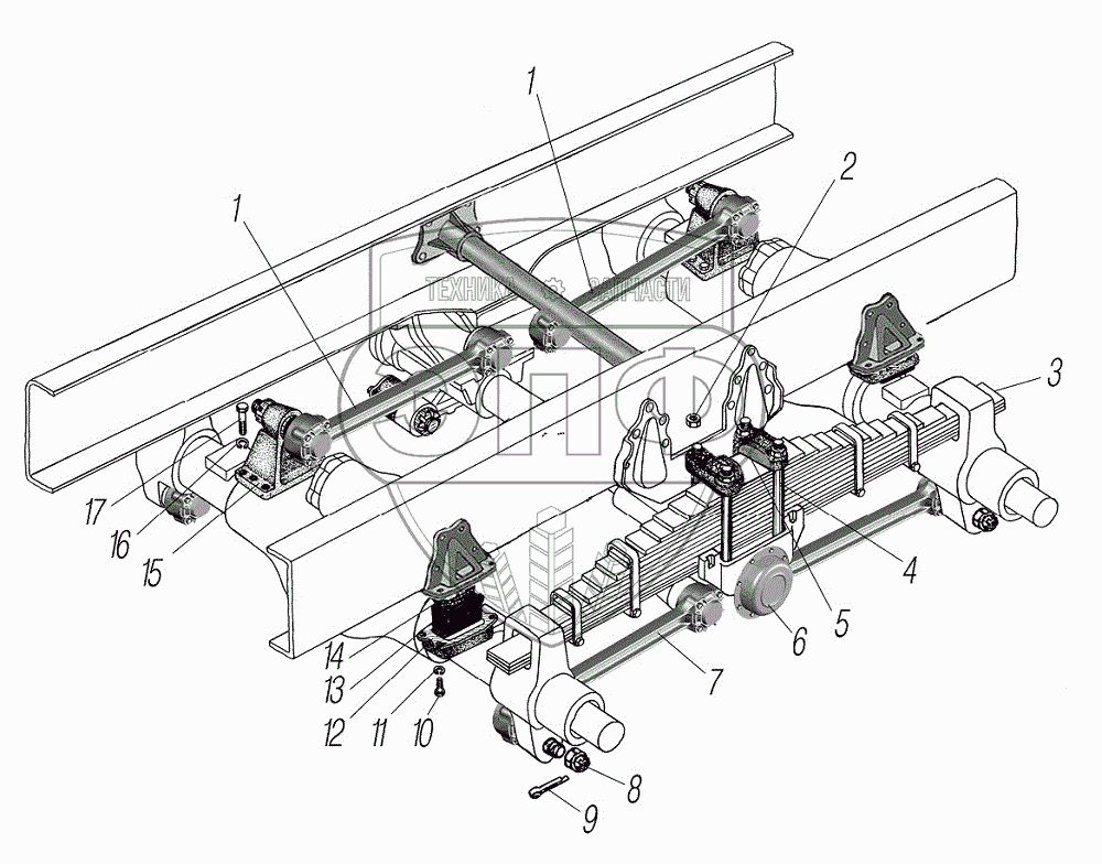 Каталог запасных частей к технике: УралАЗ УРАЛ-55571-1121-70. Задняя подвеска