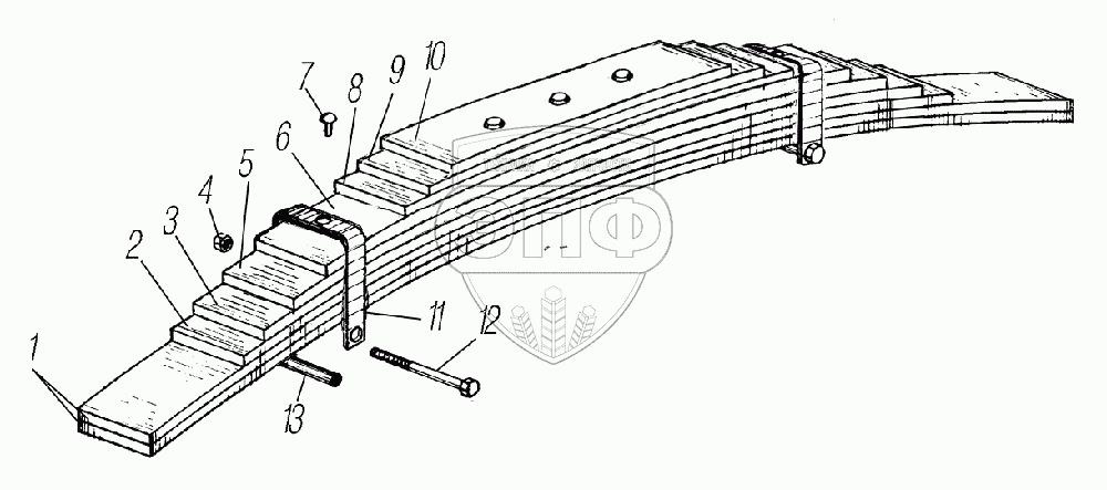 Каталог запасных частей к технике: УралАЗ УРАЛ-55571-1121-70. Задняя рессора