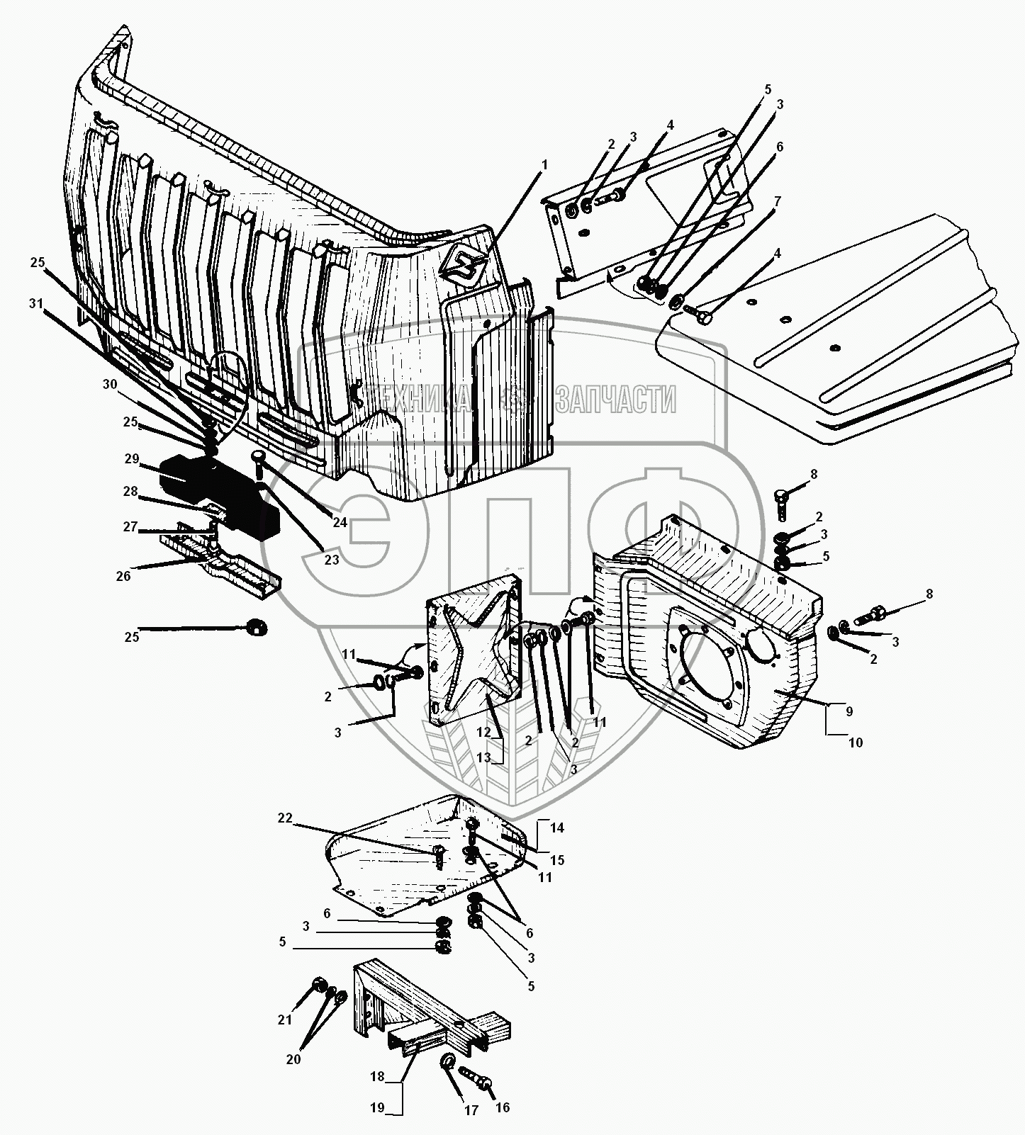 Каталог запасных частей к технике: УралАЗ УРАЛ-55571-30. Облицовка радиатора