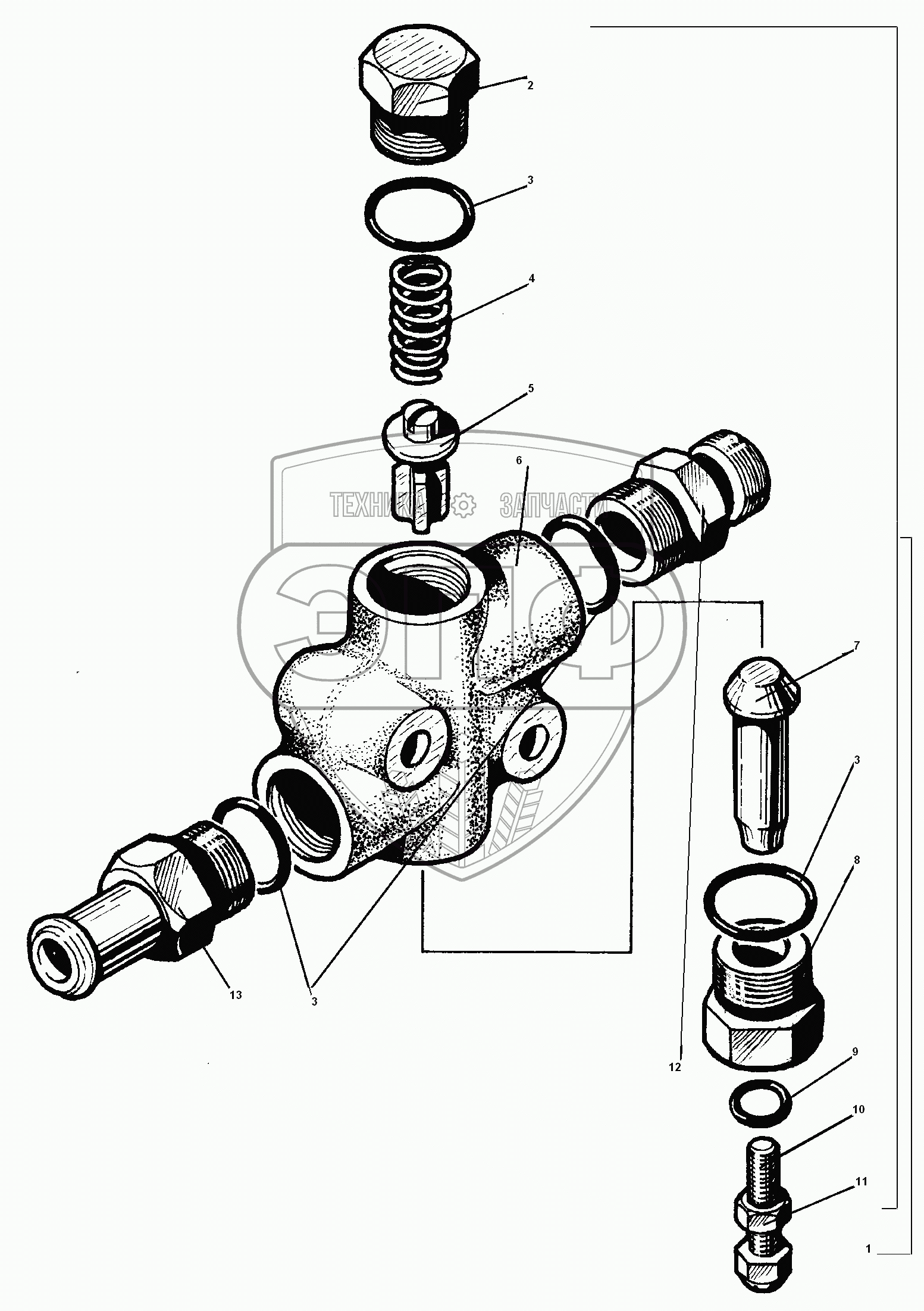 Каталог запасных частей к технике: УралАЗ УРАЛ-55571-30. Ограничительный клапан