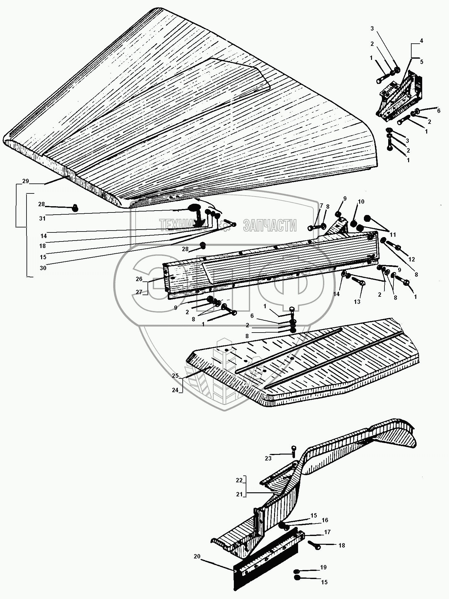 Каталог запасных частей к технике: УралАЗ УРАЛ-55571-30. Оперение автомобиля