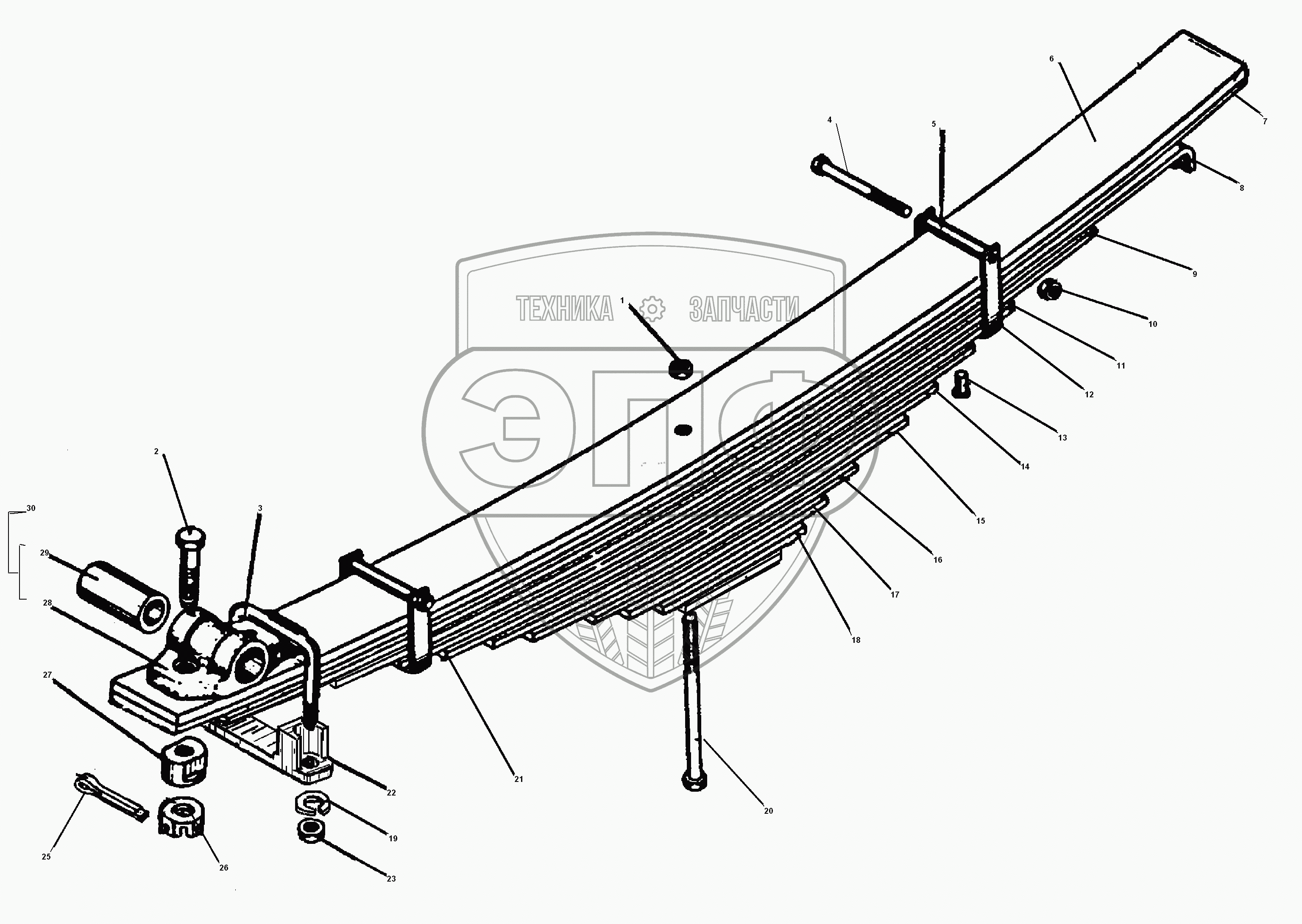Каталог запасных частей к технике: УралАЗ УРАЛ-55571-30. Передняя рессора