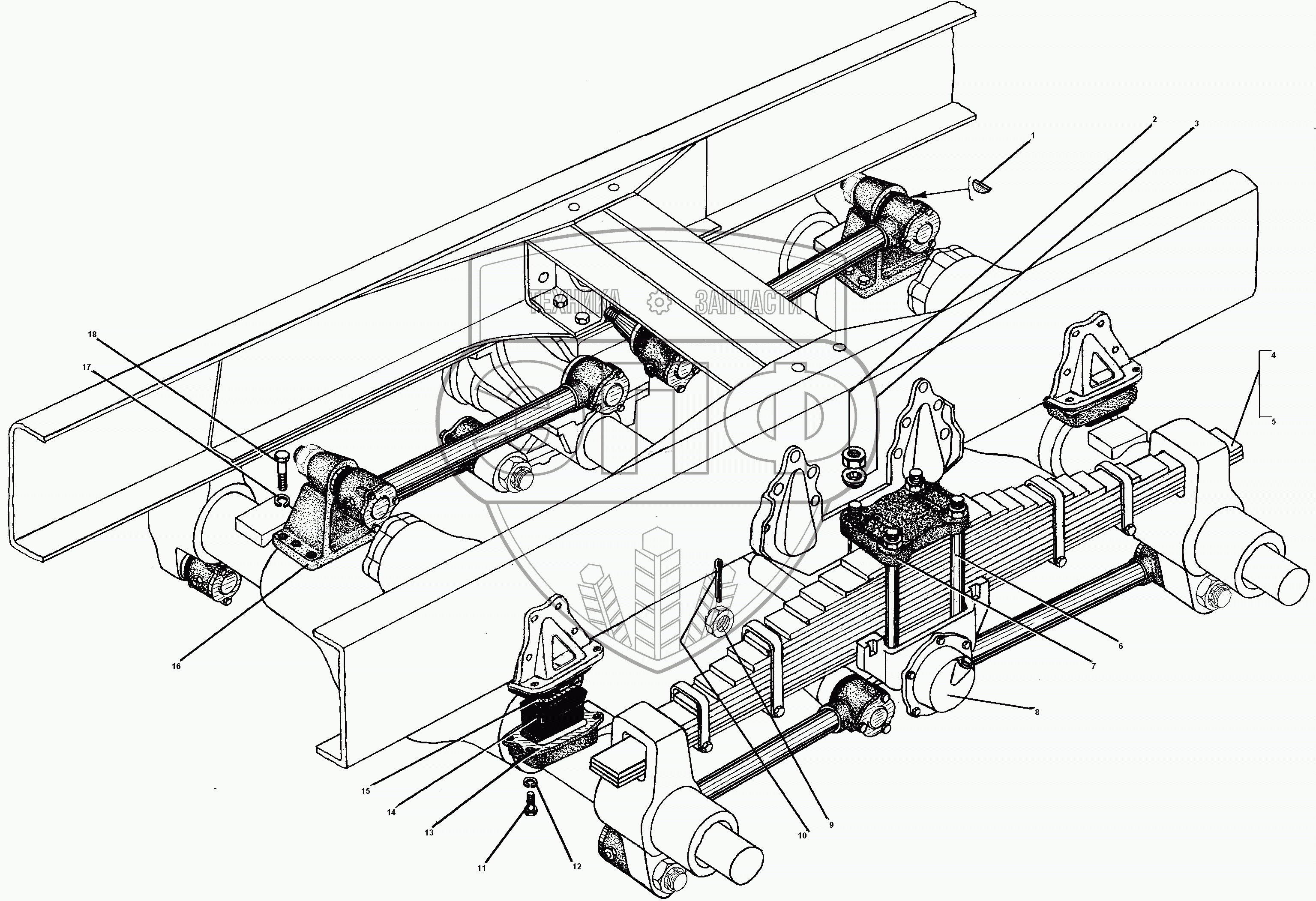 Каталог запасных частей к технике: УралАЗ УРАЛ-55571-30. Задняя балансирная подвеска