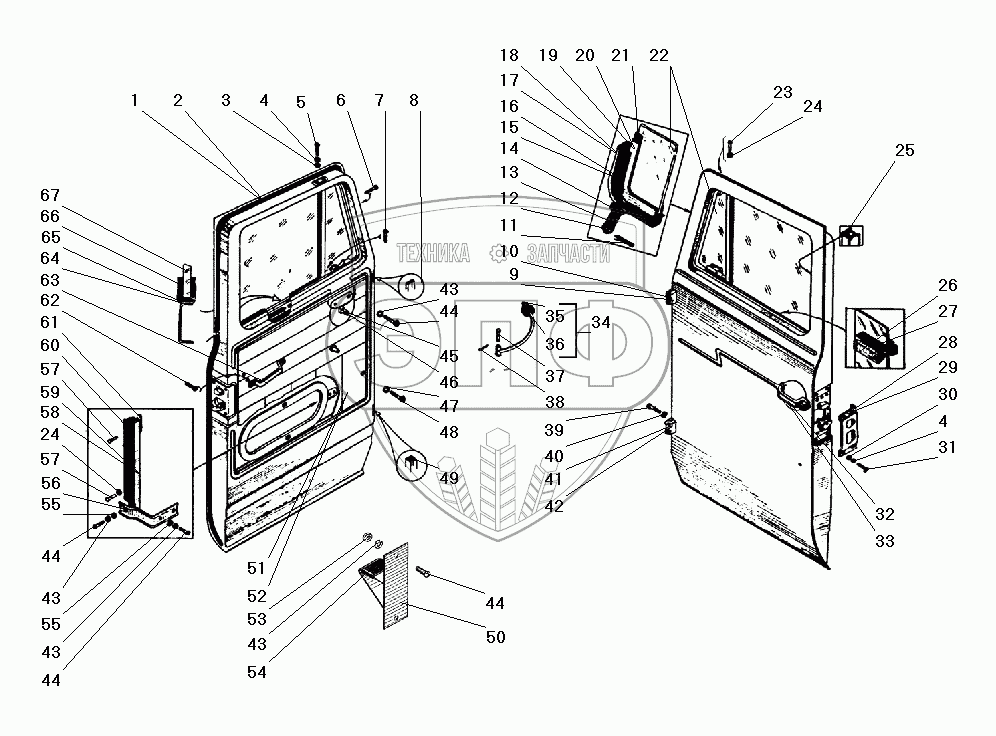 Каталог запасных частей к технике: УралАЗ УРАЛ-55571-40. Двери кабины