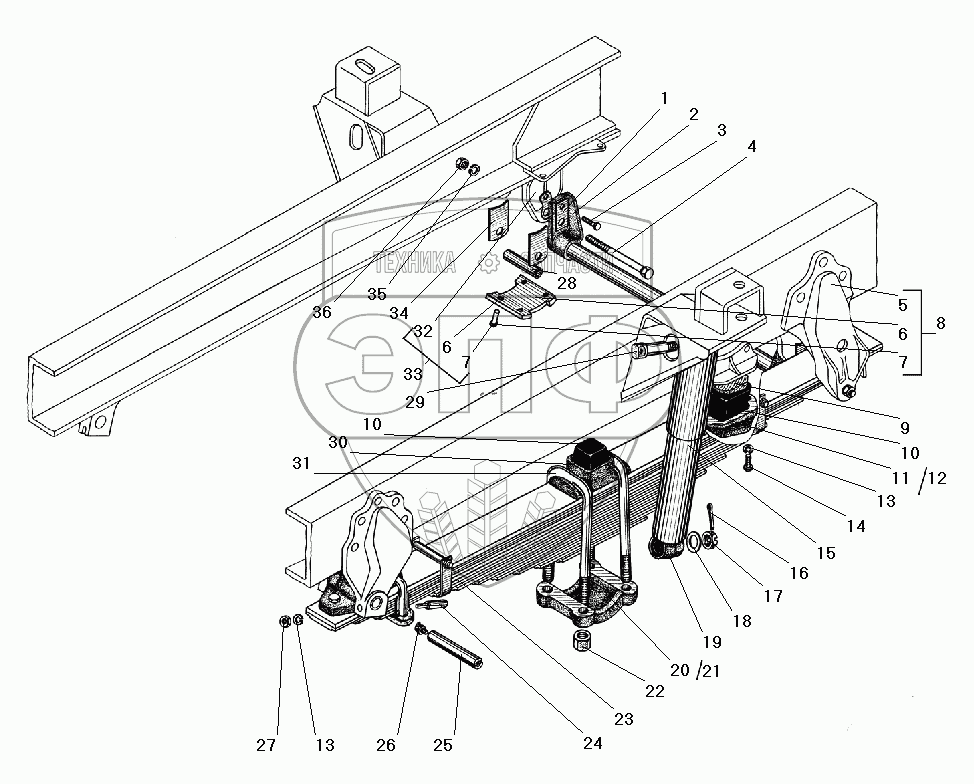 Каталог запасных частей к технике: УралАЗ УРАЛ-55571-40. Передняя подвеска