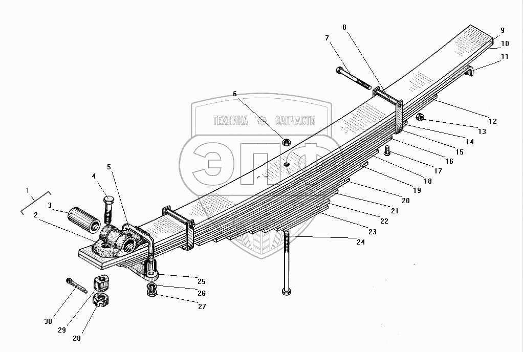 Каталог запасных частей к технике: УралАЗ УРАЛ-55571-40. Передняя рессора