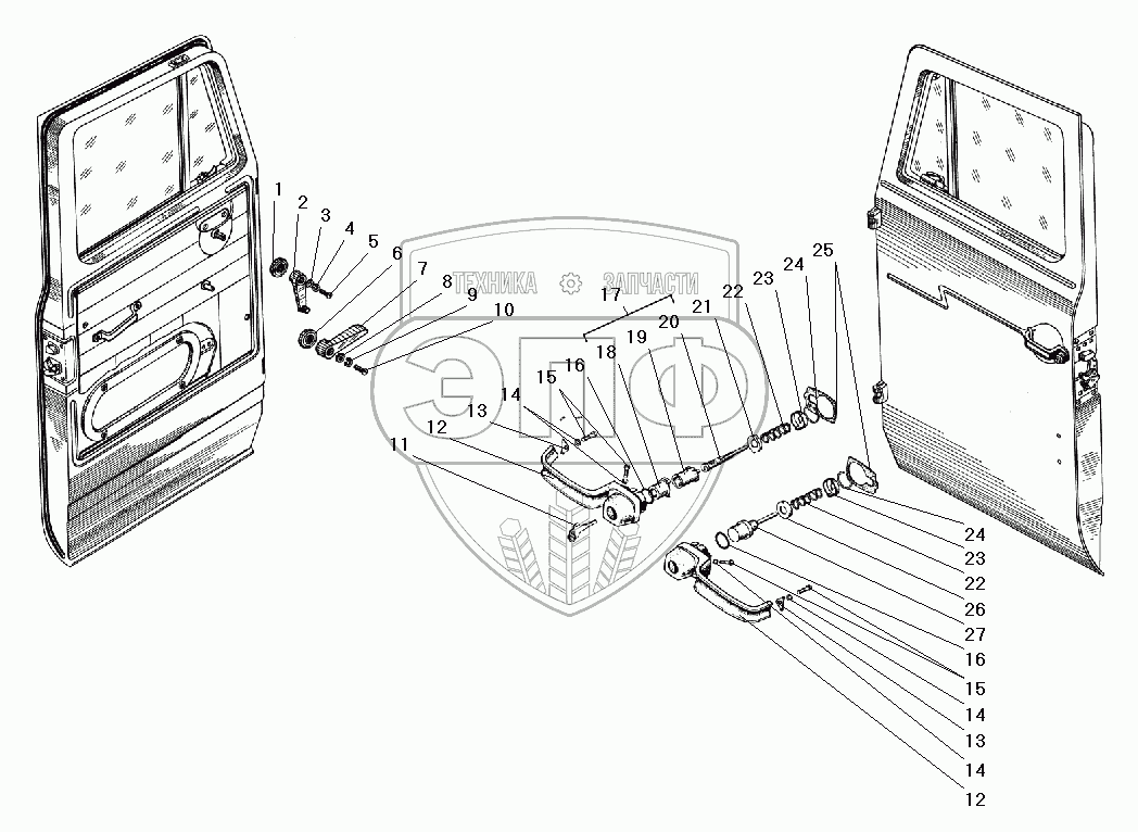 Каталог запасных частей к технике: УралАЗ УРАЛ-55571-40. Ручки двери