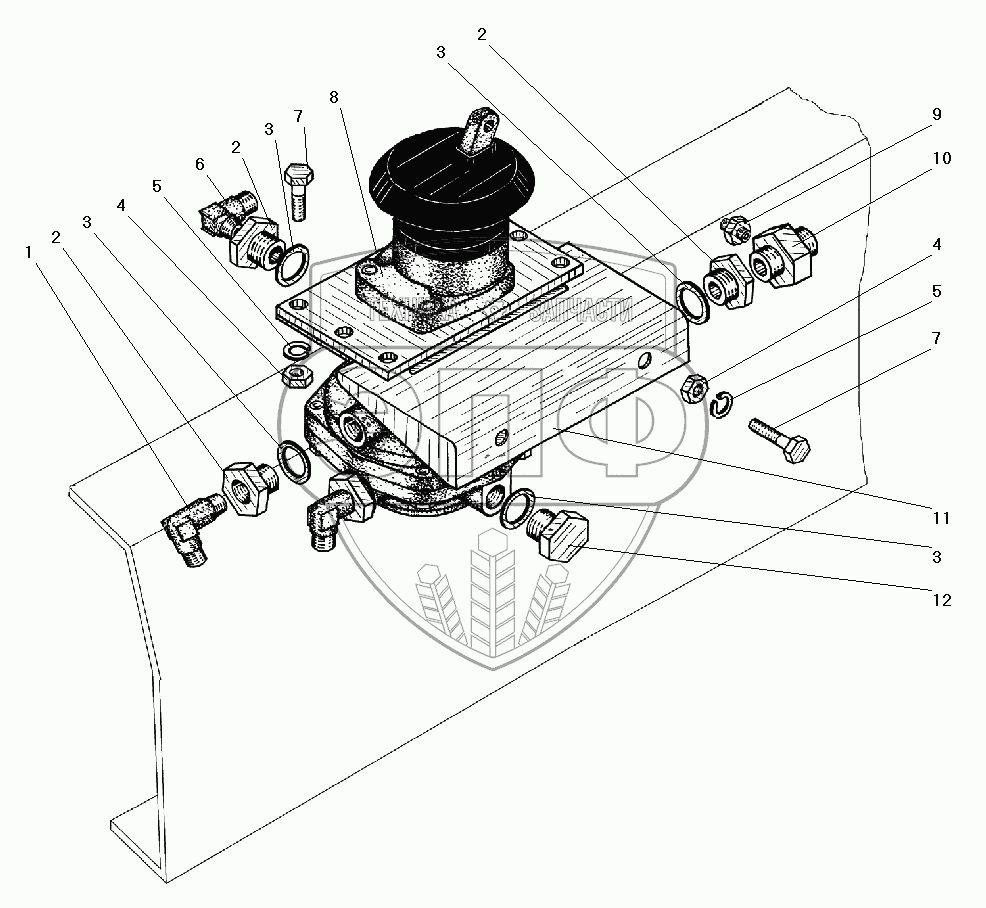 Каталог запасных частей к технике: УралАЗ УРАЛ-55571-40. Установка тормозного крана