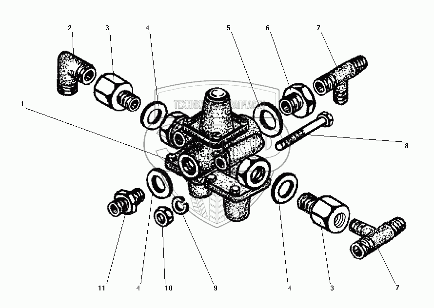 Каталог запасных частей к технике: УралАЗ УРАЛ-55571-40. Установка тройного защитного клапана