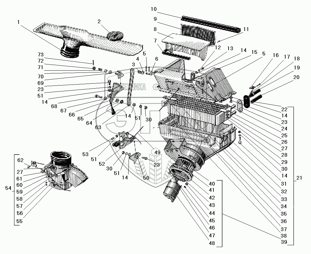 | 33 | 4320-8101015-10 | Кожух отопителя в сборе | Нет на складе | |
