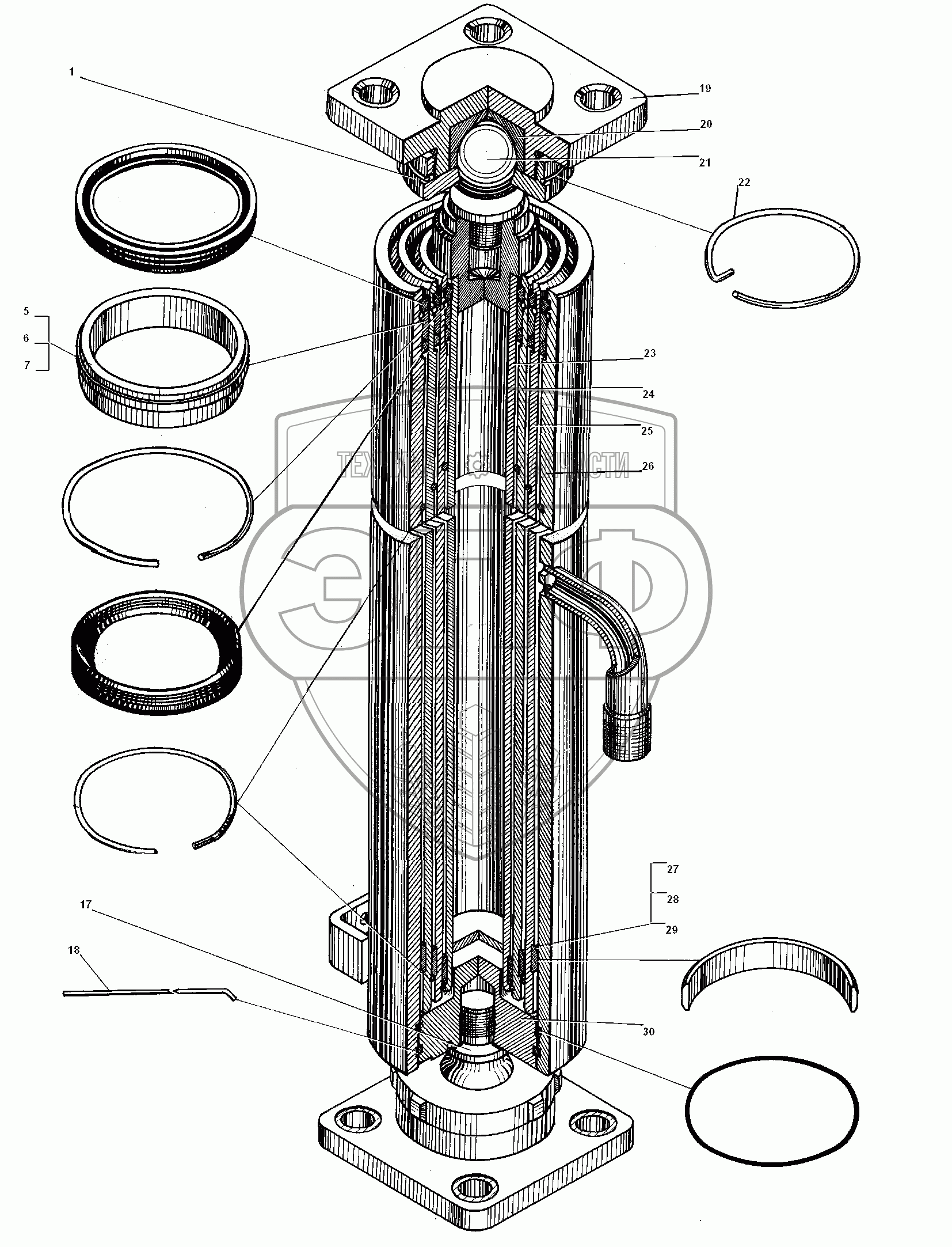 Каталог запасных частей к технике: УралАЗ УРАЛ-5557-31. Гидроцилиндр подъема платформы