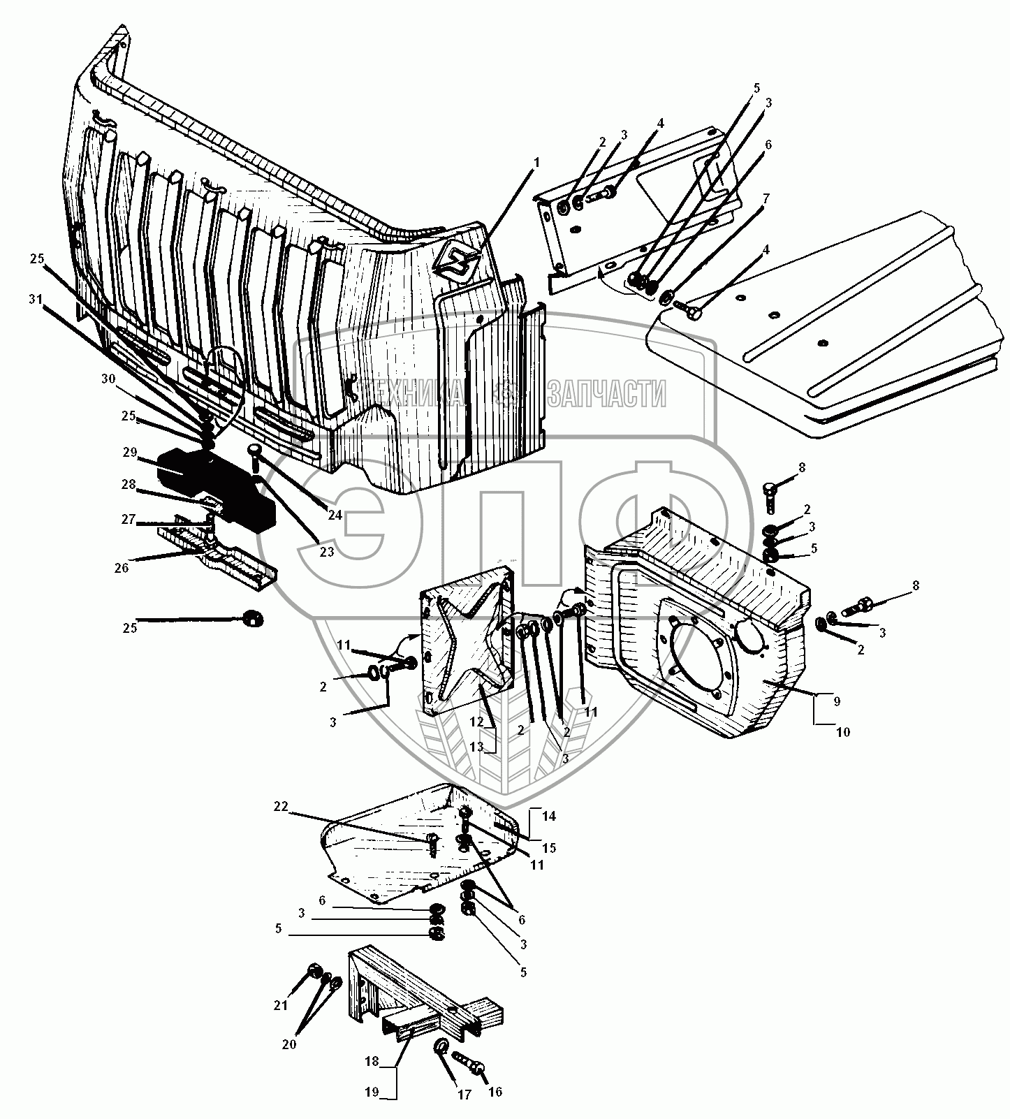 Каталог запасных частей к технике: УралАЗ УРАЛ-5557-31. Облицовка радиатора