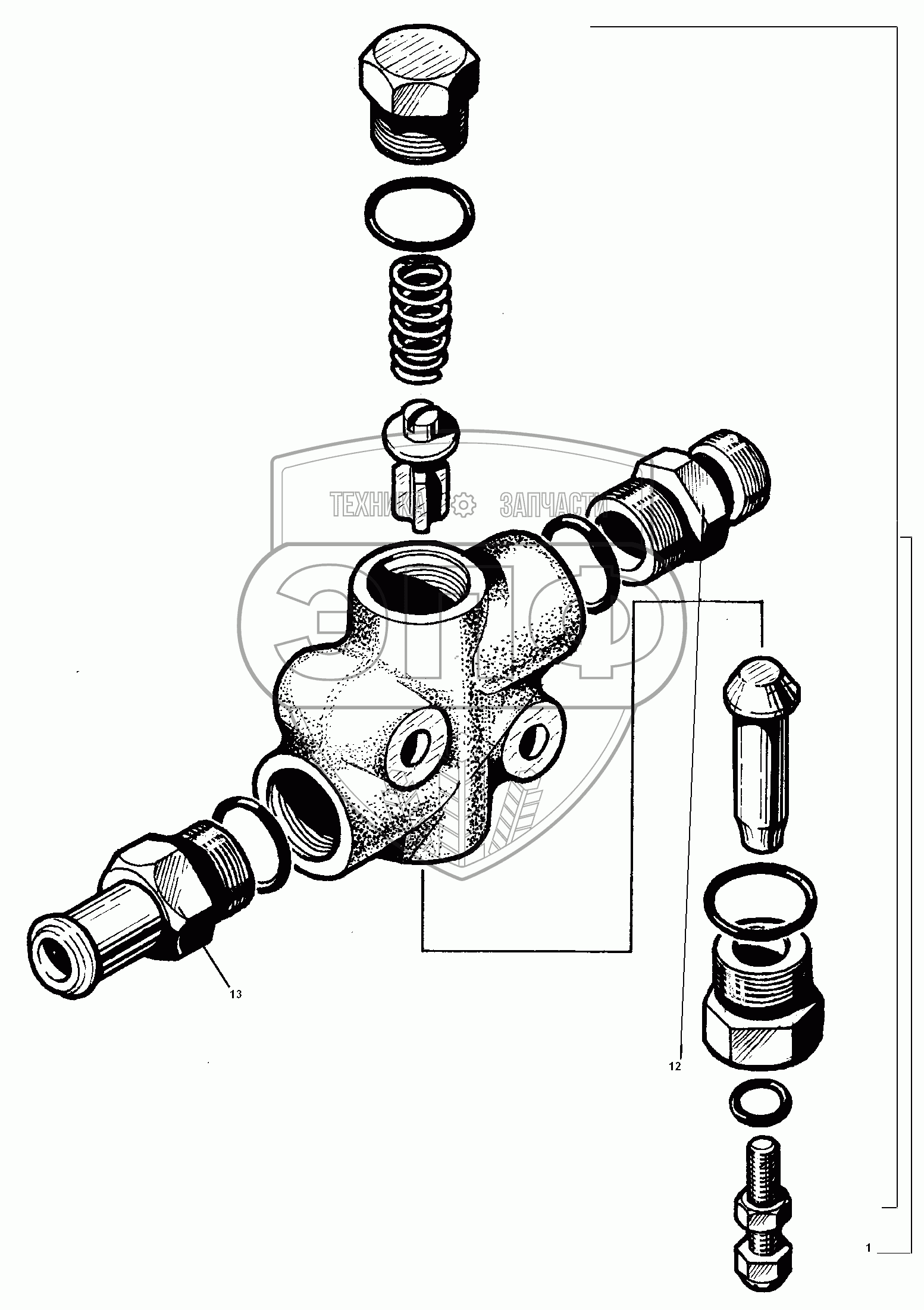 Каталог запасных частей к технике: УралАЗ УРАЛ-5557-31. Ограничительный клапан