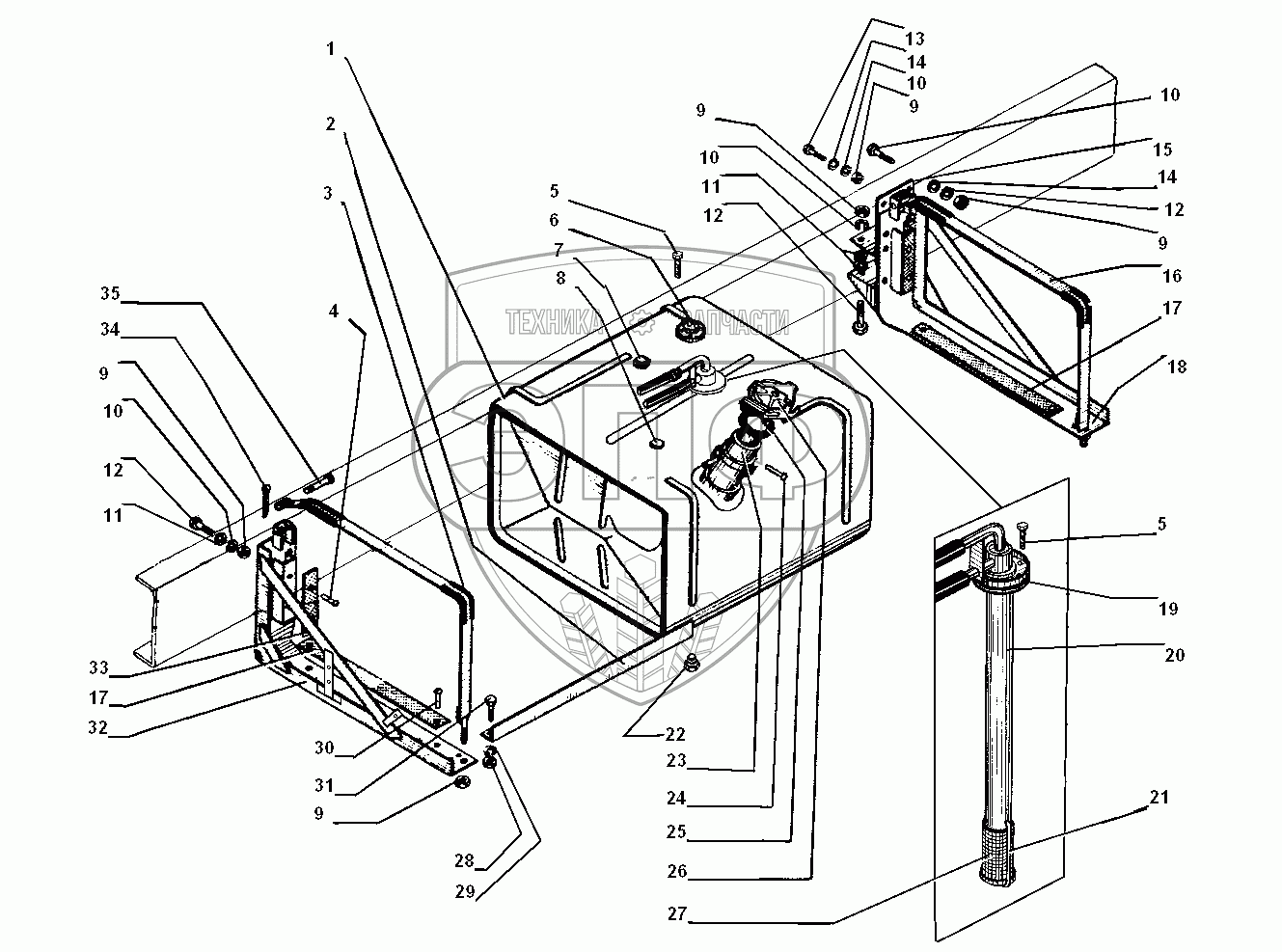Каталог запасных частей к технике: УралАЗ УРАЛ-5557-31. Основной топливный бак