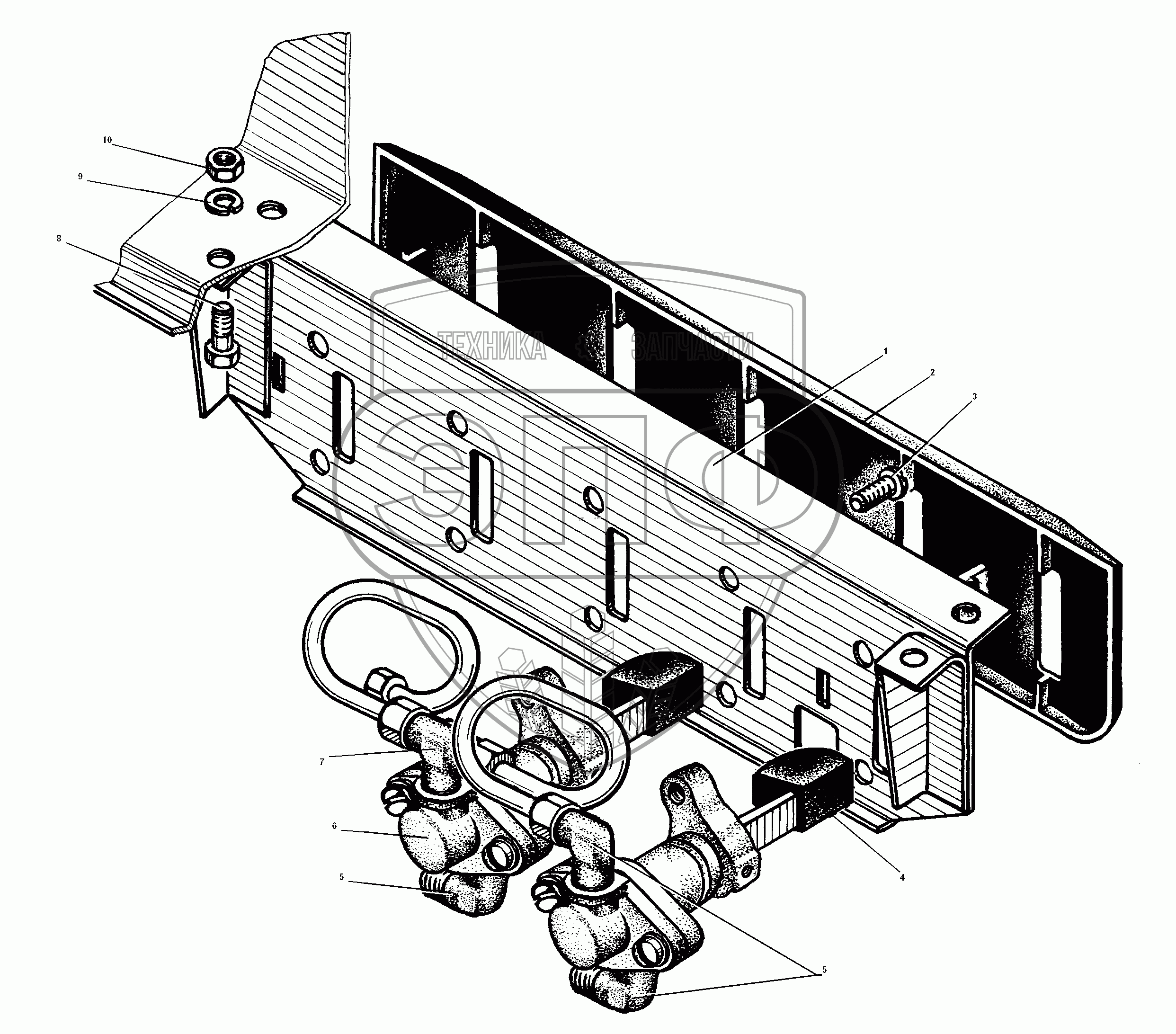 Каталог запасных частей к технике: УралАЗ УРАЛ-5557-31. Панель управления с кранами