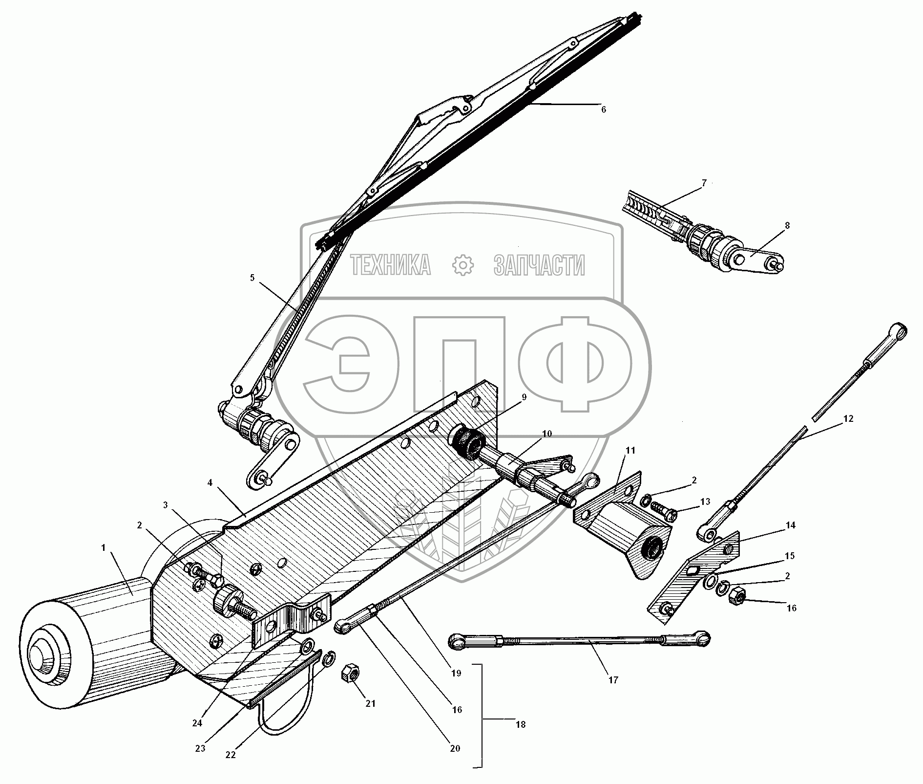 Каталог запасных частей к технике: УралАЗ УРАЛ-5557-31. Стеклоочиститель и его привод