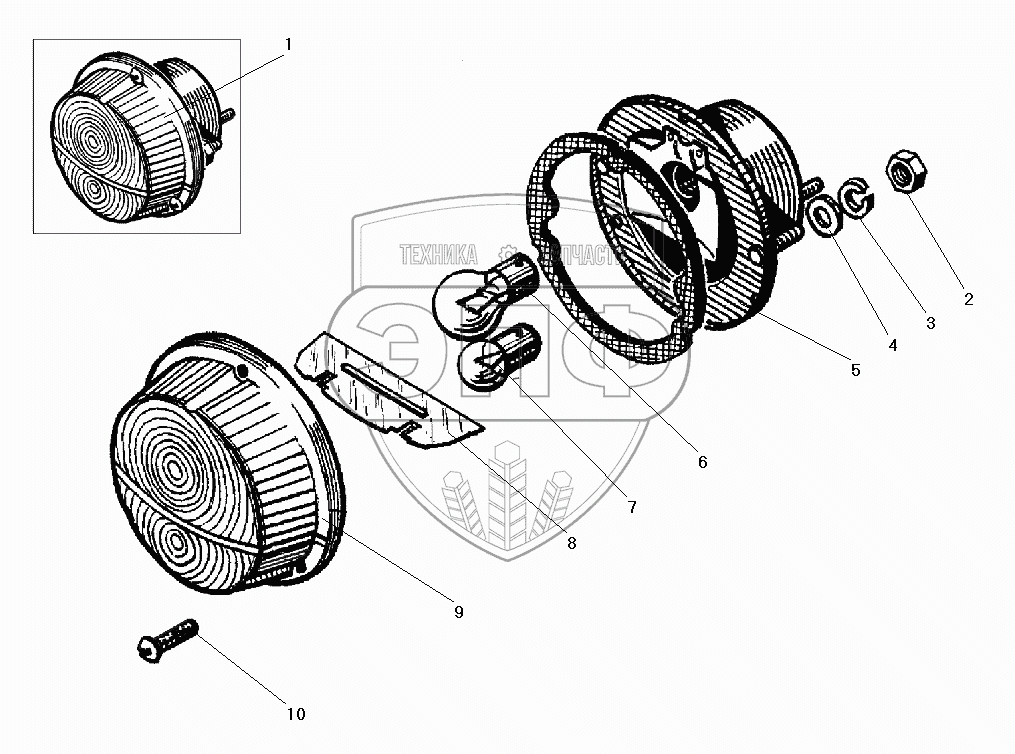 Каталог запасных частей к технике: УралАЗ УРАЛ-5557-40. Фонарь передний