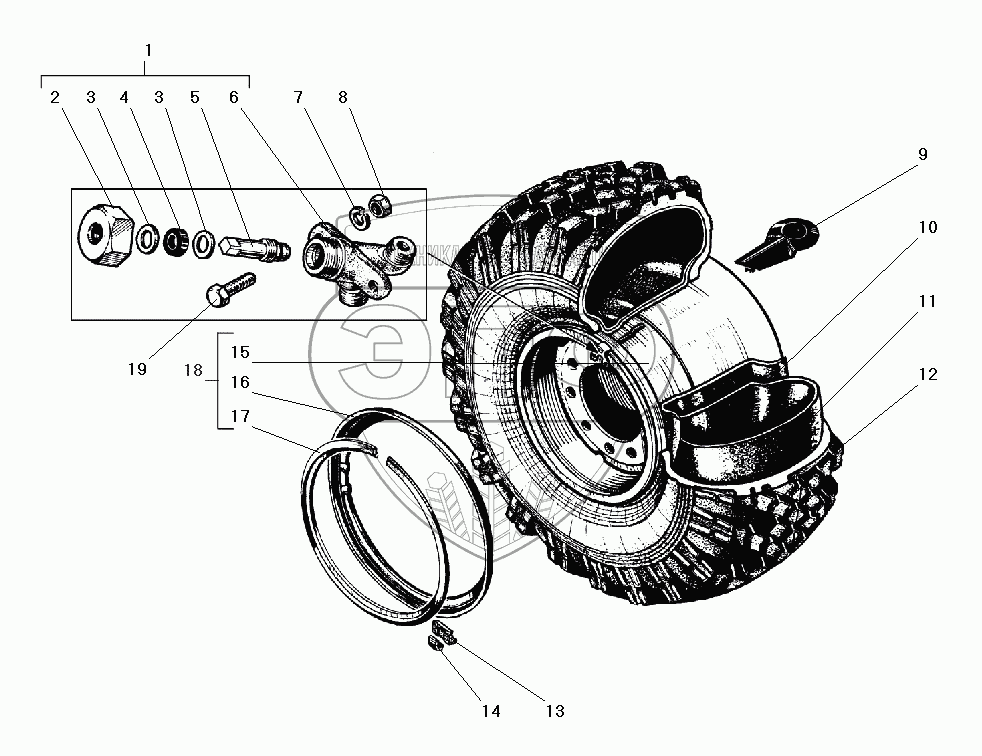 Каталог запасных частей к технике: УралАЗ УРАЛ-5557-40. Колесо и шина