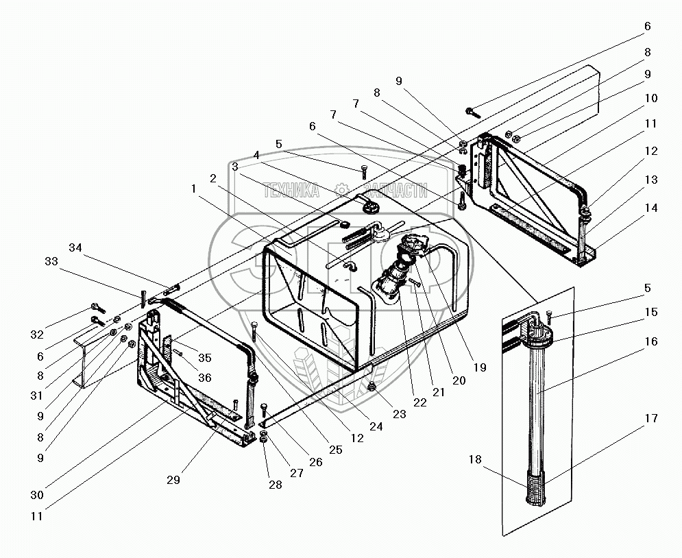 Каталог запасных частей к технике: УралАЗ УРАЛ-5557-40. Основной топливный бак