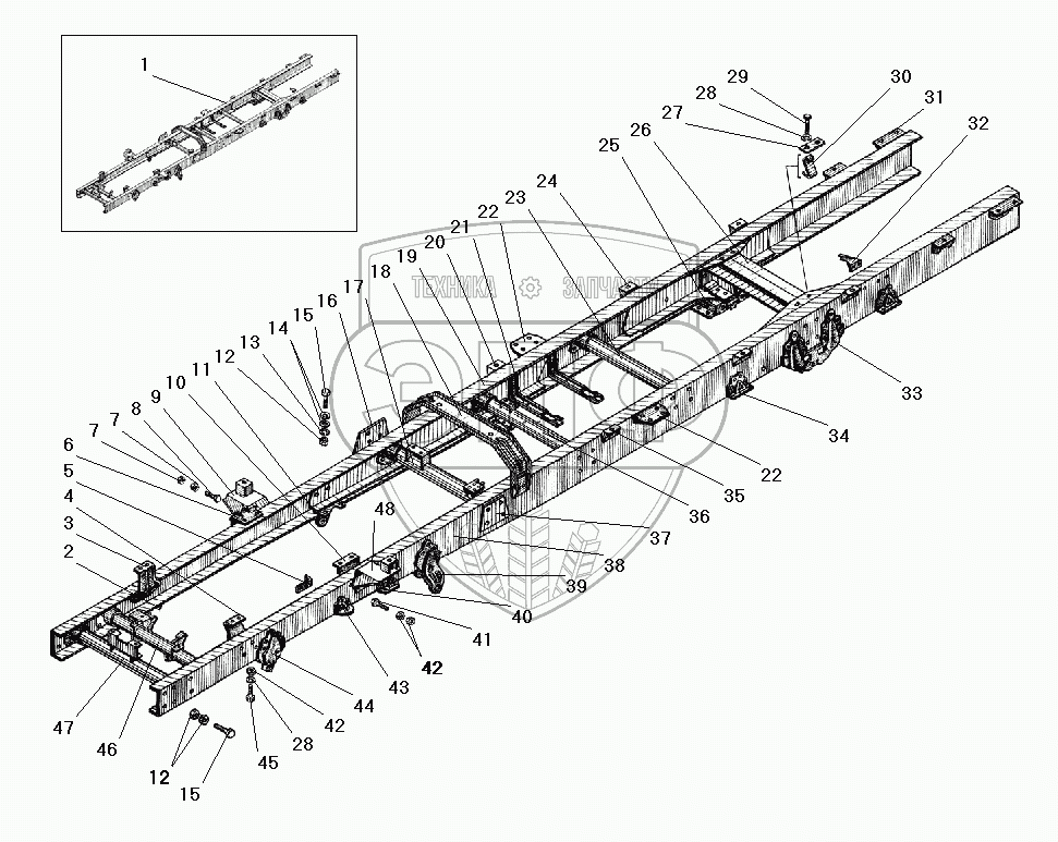 Каталог запасных частей к технике: УралАЗ УРАЛ-5557-40. Рама автомобиля