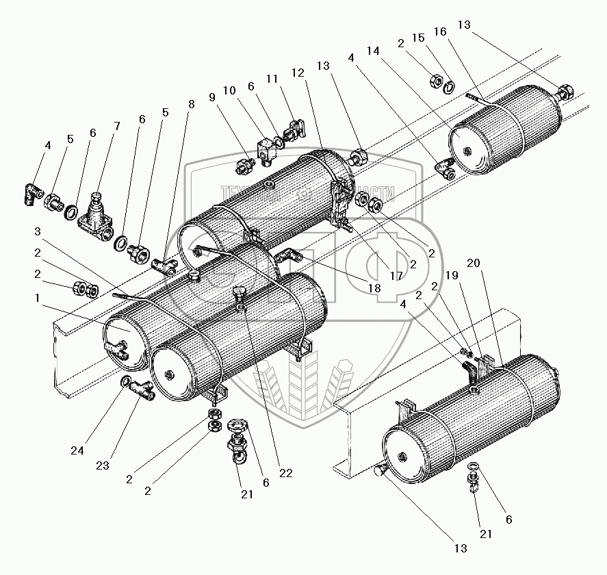 Каталог запасных частей к технике: УралАЗ УРАЛ-5557-40. Установка воздушных баллонов