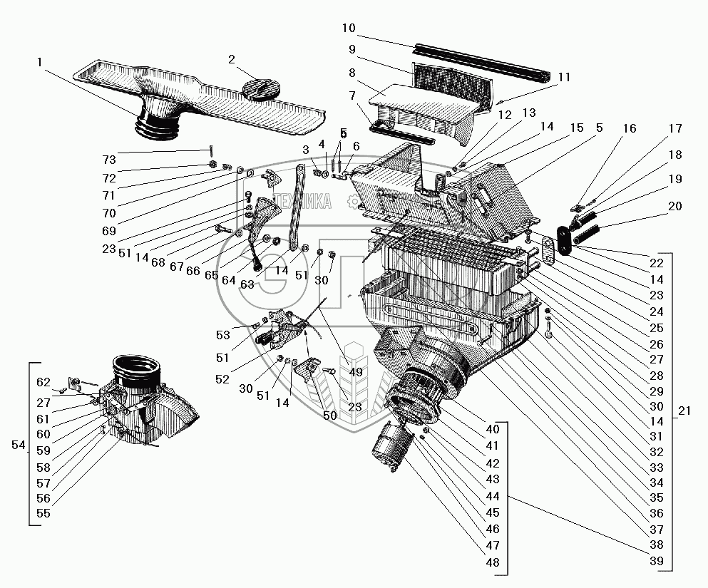 | 33 | 4320-8101015-10 | Кожух отопителя в сборе | Нет на складе | |