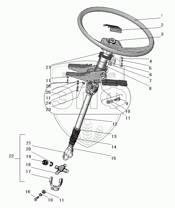 Каталог запасных частей к технике: УралАЗ УРАЛ-63674. Колесо и вал рулевого управления