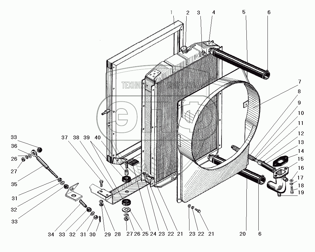Каталог запасных частей к технике: УралАЗ УРАЛ-63674. Радиатор системы охлаждения