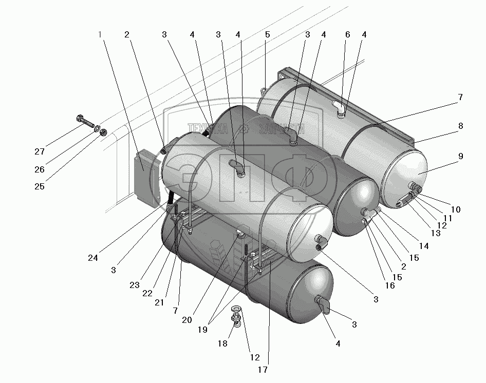 Каталог запасных частей к технике: УралАЗ УРАЛ-63685. Установка воздушных баллонов
