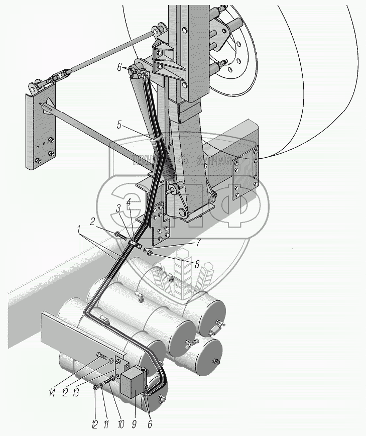 Каталог запасных частей к технике: УралАЗ УРАЛ-6370-1121. Гидропривод подъема запасного колеса