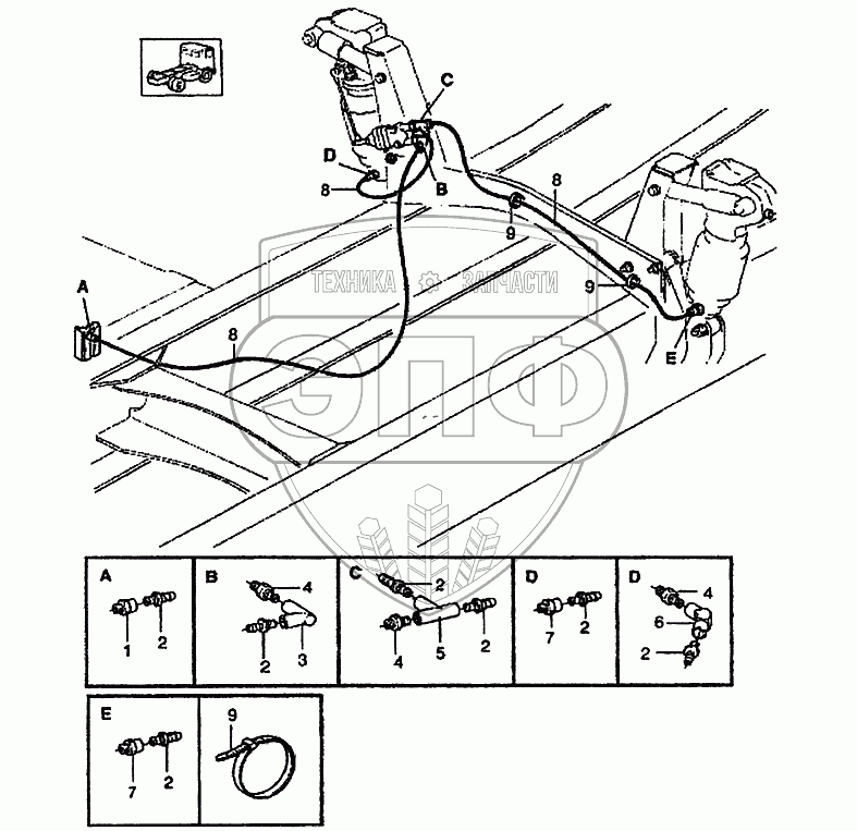 Каталог запасных частей к технике: Volvo FH12. Элементы подвески кабины и трубки подключения
