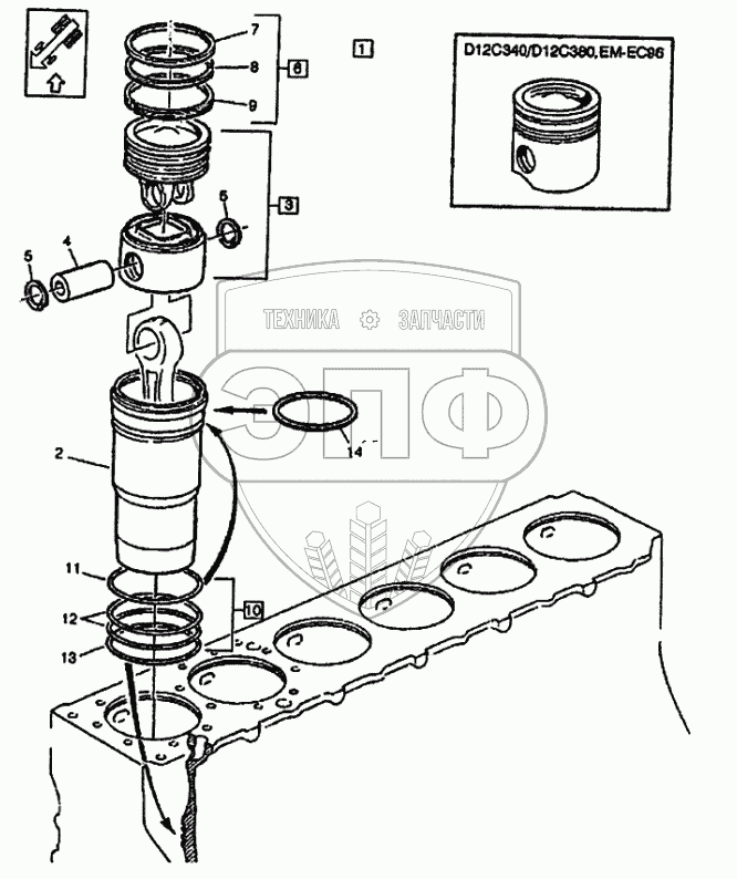 Каталог запасных частей к технике: Volvo FH12. Гильзы и поршни