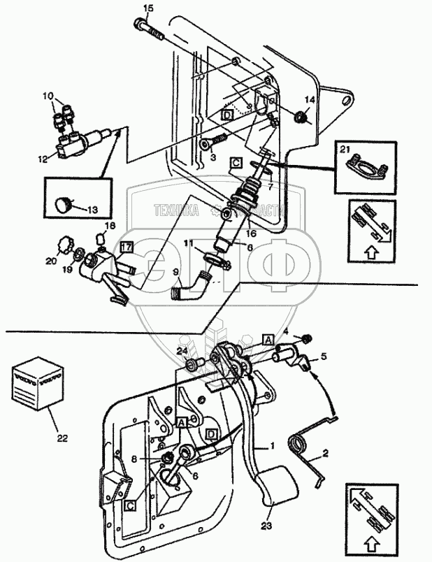 Каталог запасных частей к технике: Volvo FH12. Педаль сцепления