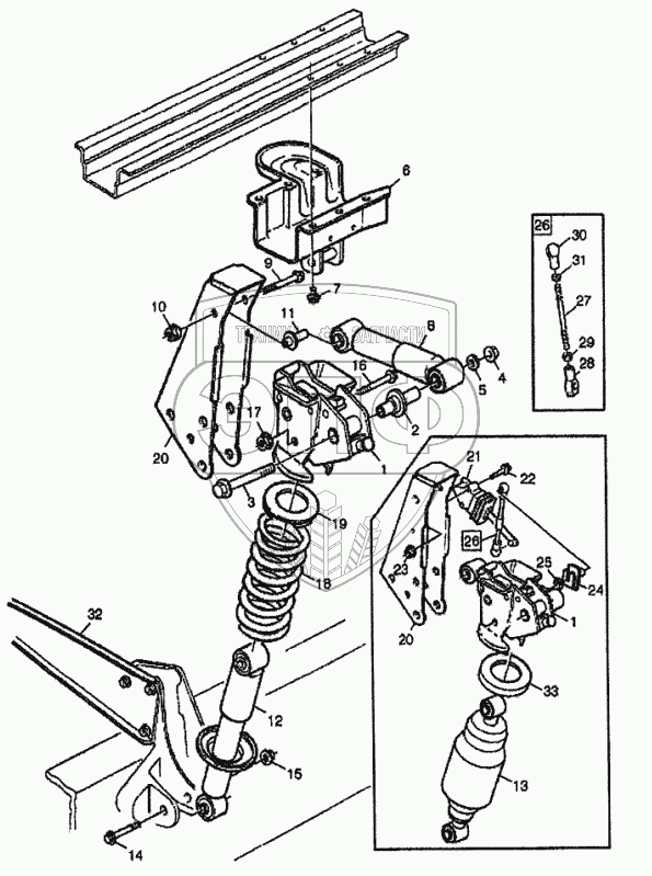 Каталог запасных частей к технике: Volvo FH12. Подвеска кабины (задняя часть)