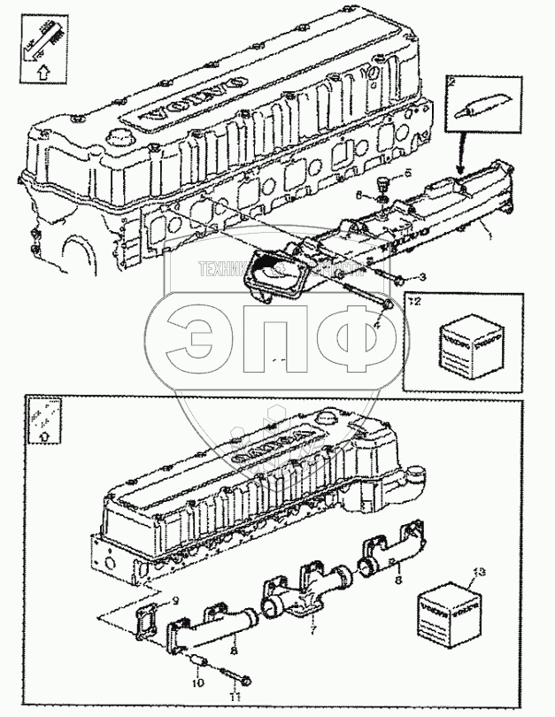 Каталог запасных частей к технике: Volvo FH12. Впускной и выпускной коллектор
