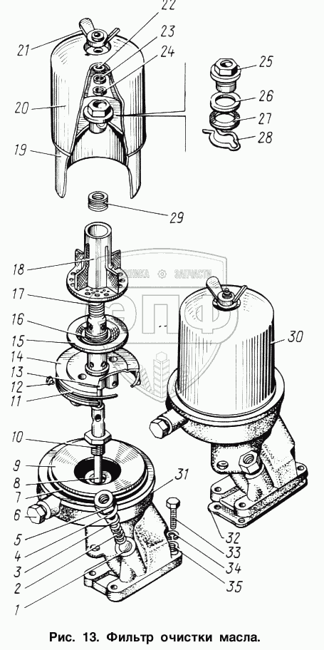 Каталог запасных частей к технике: ЗИЛ-131. Фильтр очистки масла