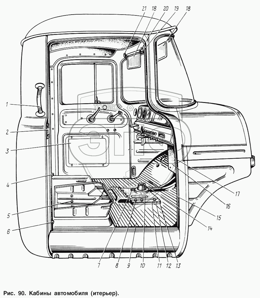 Каталог запасных частей к технике: ЗИЛ-131. Кабина автомобиля (интерьер)