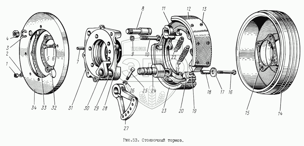 Каталог запасных частей к технике: ЗИЛ-131. Стояночный тормоз