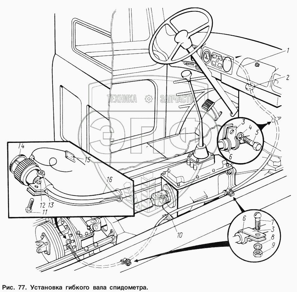 Каталог запасных частей к технике: ЗИЛ-131. Установка гибкого вала спидометра