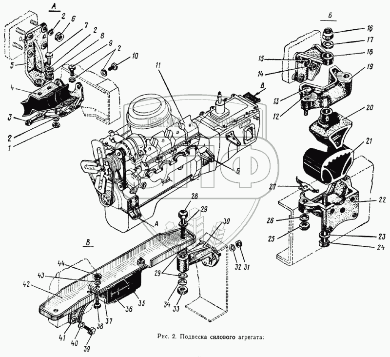 Каталог запасных частей к технике: ЗИЛ-133ГЯ. Подвеска силового агрегата