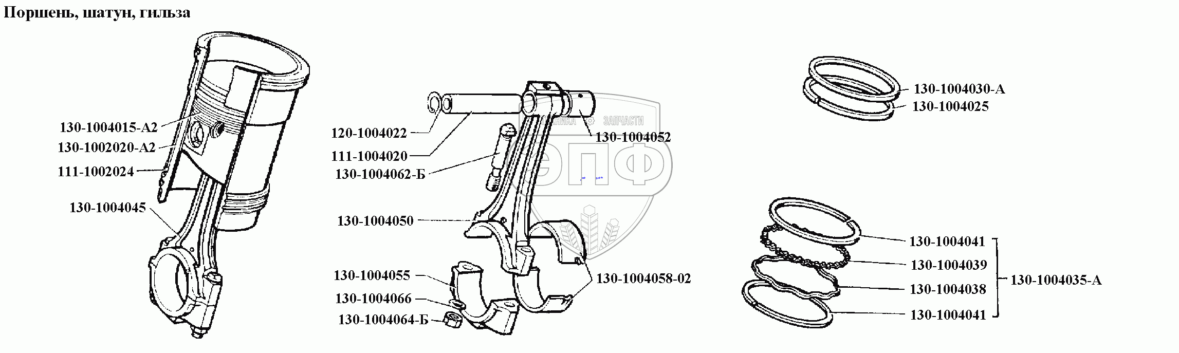 Каталог запасных частей к технике: ЗИЛ-431416. Двигатель\Поршень, шатун, гильза