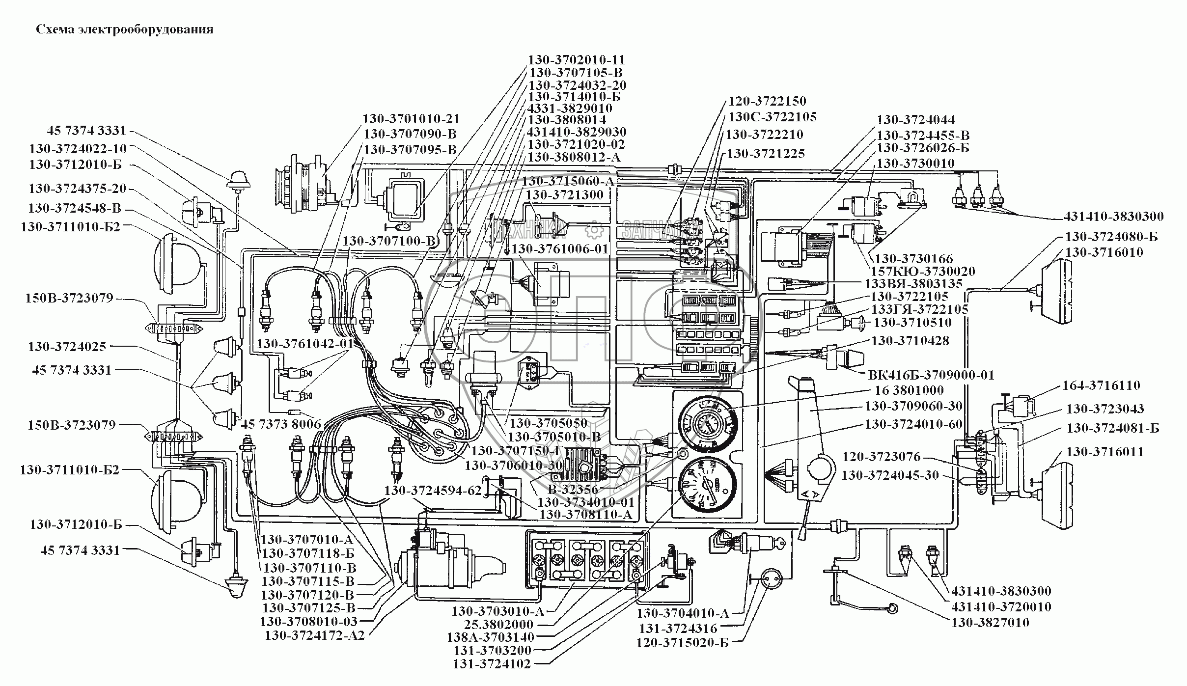 Каталог запасных частей к технике: ЗИЛ-431416. Электрооборудование\Схема электрооборудования