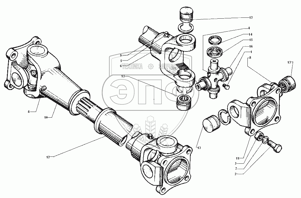 Каталог запасных частей к технике: ЗИЛ-43272Н, 43273Н. Карданный вал привода лебедки