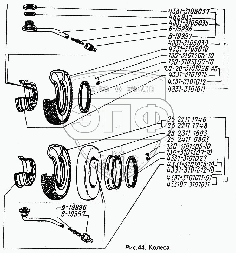 Каталог запасных частей к технике: ЗИЛ-433100. Колеса