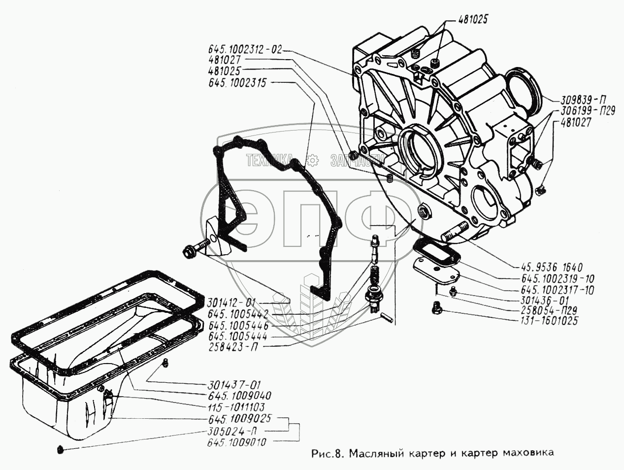 Каталог запасных частей к технике: ЗИЛ-433100. Масляный картер и картер маховика
