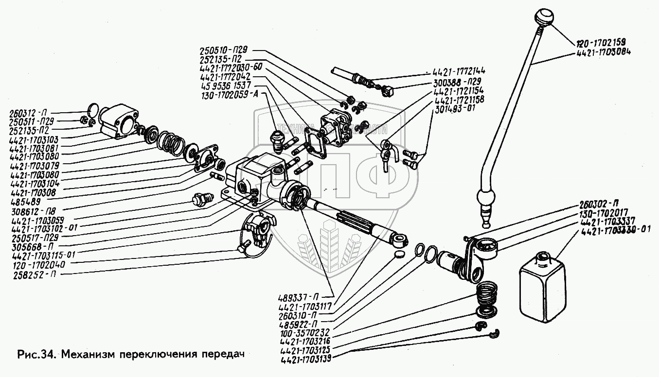Каталог запасных частей к технике: ЗИЛ-433100. Механизм переключения передач